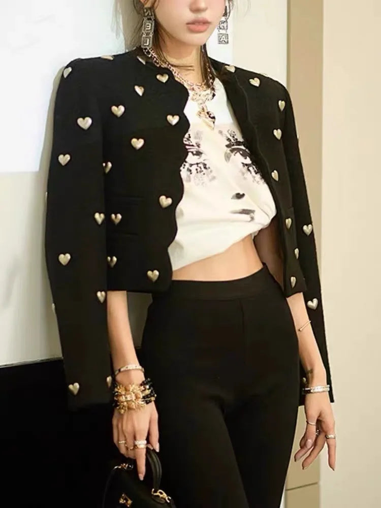 Amelie Heart Jacket – Elegante Kurzjacke mit Herz-Applikationen