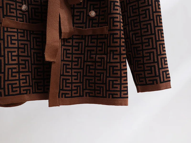 Das Aria Three-Piece Set vereint Stil, Komfort und moderne Eleganz in einem perfekt abgestimmten Komplettoutfit. Das Set besteht aus einem figurfreundlichen Top, einer weit geschnittenen Hose und einem passenden Cardigan mit Bindeguertel. Das durchgaengige Muster und der weich fallende Stoff verleihen dem Set einen hochwertigen und modischen Look.