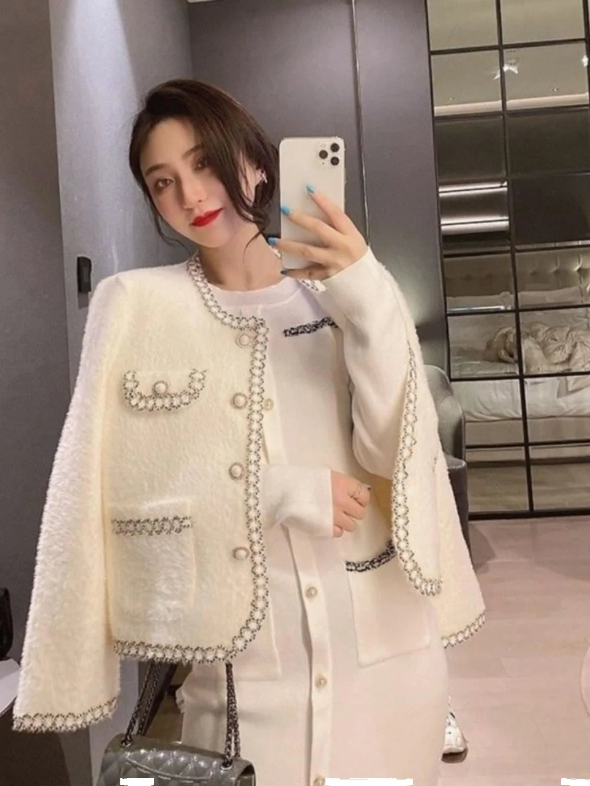 Die Bella Tweed Cape Jacket verbindet zeitlose Eleganz mit moderner Raffinesse. Diese exklusive Damenjacke im Cape-Stil beeindruckt durch ihre hochwertig strukturierte Flannel-Textur, edle Perlendetails und den femininen O-Ausschnitt. Das Design legt den Fokus auf Luxus und feine Verarbeitung, wodurch die Jacke sich perfekt für besondere Anlaesse, Business-Looks und stilvolle Abend-Outfits eignet.