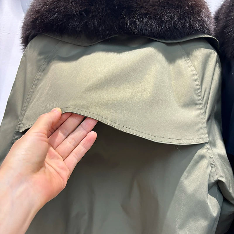 Die Celina Fox Fur Collar Jacket verbindet luxuriösen Fellbesatz mit einer modernen, kompakten Silhouette. Der voluminöse Fuchspelzkragen verleiht der Jacke einen exklusiven Look und sorgt gleichzeitig für angenehme Wärme. Das hochwertige Polyester-Baumwollgewebe bietet Struktur, Komfort und Langlebigkeit, während das Innere weich gefüttert ist.
