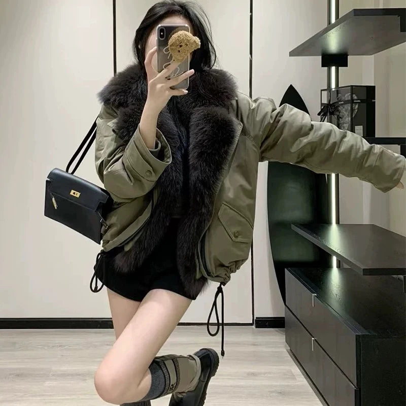 Celina Fox Fur Collar Jacket – Kurzjacke mit echtem Fuchspelzkragen