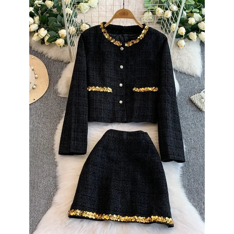 Clara Sequin Tweed Set – Elegantes Zweiteiler-Set mit Pailetten-Details