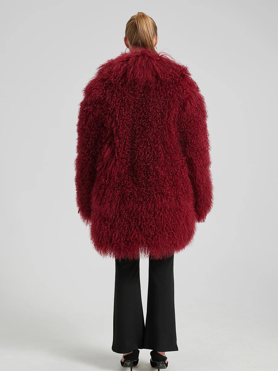 Evelyn Mongolian Lamb Fur Coat – Langer Mantel aus echtem Mongolischem Lammfell
